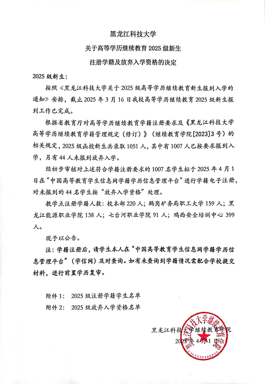 4118云顶集团关于高等学历继续教育2025级新生注册学籍及放弃入学资格的决定